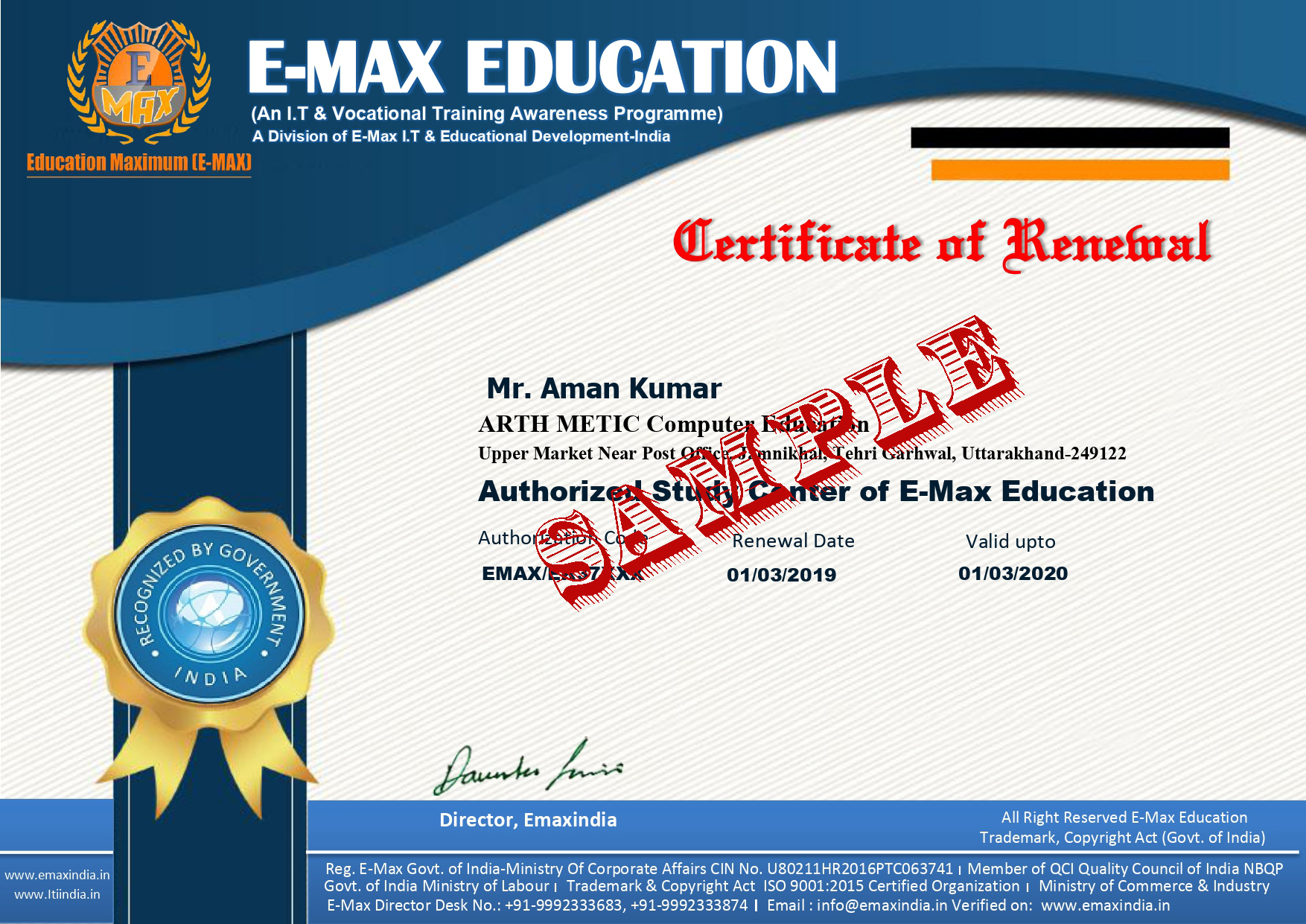 Note: all Course Detail on our Site on www.emaxindia.inCertificate valid for life time